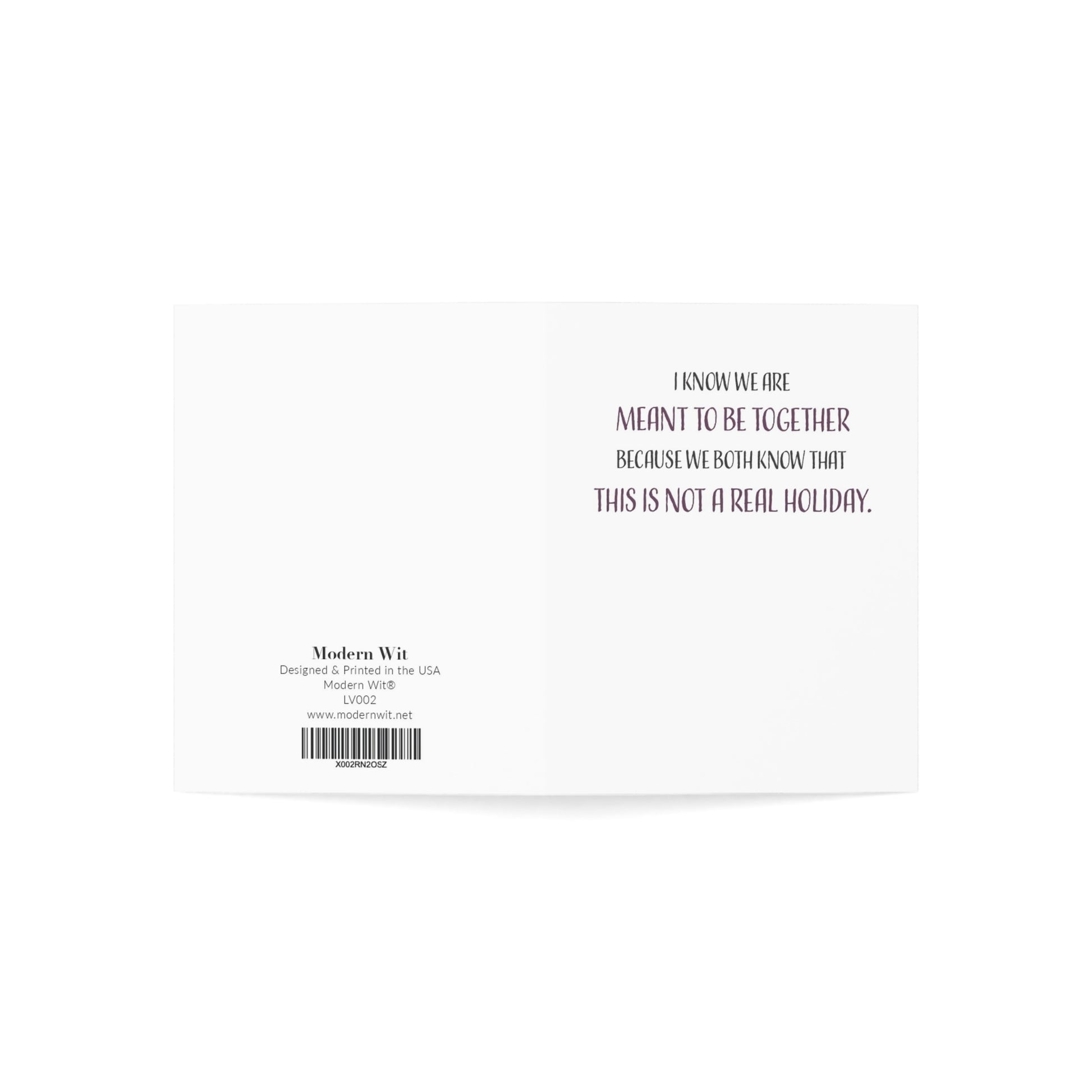 Ah, Valentine's Day, the not-so-serious holiday that still manages to stir up a whole lot of love and romance. At Modern Wit, we embrace the playful side of this day and have the perfect Love Card to bring humor to your celebrations. I Know We Are Meant To Be Together Because We Both Know That This Is Not A Real Holiday.